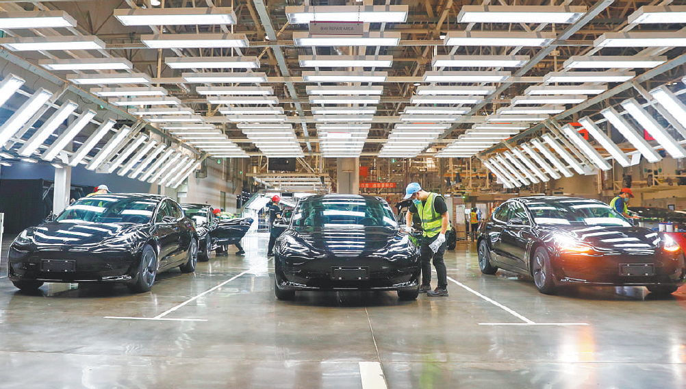 圖為工作人員在特斯拉上海超級工廠內作業。新華社記者丁汀攝