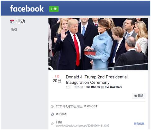 報道稱,目前已有超過6萬人在臉書上表示,他們計劃參加被稱為“唐納德•特朗普第二次總統就職典禮”的活動。