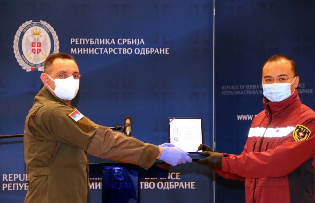 為表彰中國赴塞抗疫專家組作出的傑出貢獻,塞爾維亞國防部長武林 親自向中國專家們頒發了最高榮譽紀念勳章。對當時的一幕,專家組組長彭志強 至今難以忘懷:“在這個特殊時刻,我們內心都非常激動。這一方面是對我們工作的肯定,另一方面也是中塞兩國鋼鐵般友誼的象徵。”