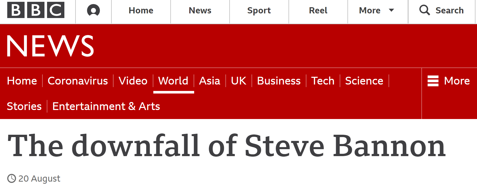 △英國廣播公司(BBC)在2020年8月發表題為《史蒂夫·班農的沒落》的文章,揭示史蒂夫·班農在白宮任職期間操控媒體的相關行徑。