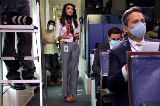 △“一個美國新聞”(OAN)的女記者應邀參加白宮新聞發佈會。