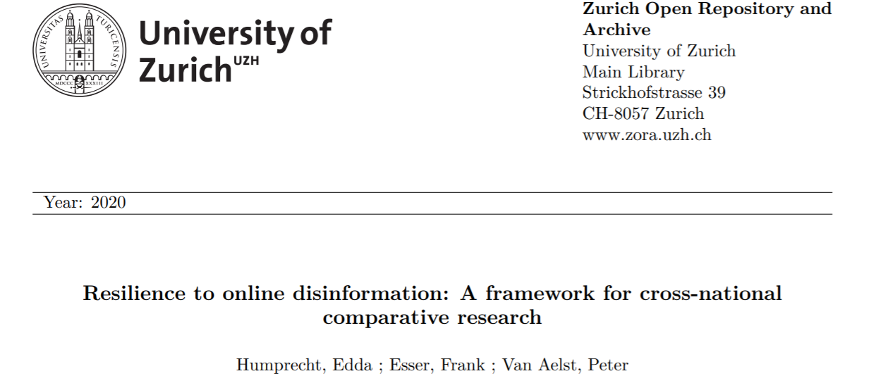 △蘇黎世大學一研究團隊於2020年發表《網絡謠言的抵禦能力:一個跨國家比較研究框架”》