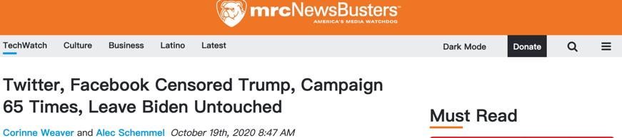 一方面,相對傳統的媒體“炮製假新聞”,另一方面,社交媒體對美國政客們的“差異化”對待,更讓不實消息得以大肆傳播。今年10月19日,美國媒體監督組織“美國媒體研究中心”發佈了一項有關美國社交媒體的調查。調查顯示,自2018年5月以來,美國總統特朗普共計被推特、臉書審查65次。儘管特朗普屢屢發佈虛假消息,臉書與推特直到今年7月底才對其正式啓用事實核查,但無論是臉書還是推特,也僅僅只能標識出其發言可能存在不實言論,直至今年8月5日,臉書與推特才第一次因“不實言論”刪除了特朗普的帖子。