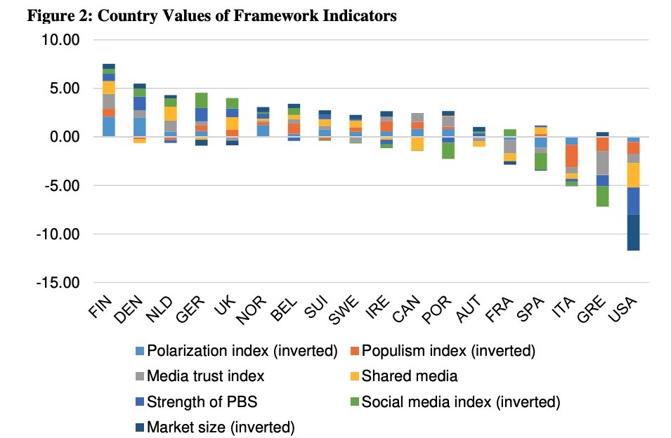 彭博社援引蘇黎世大學研究者的評論稱,美國人在所有標準的西方國家中,更傾向於相信“假新聞”,美國“具有輕易使得謠言與虛假信息快速傳播的條件”。報告分析了導致謠言更容易傳播的重要因素,一是極端對立的政治環境催生民眾的撕裂;二是缺少監管的媒體環境。