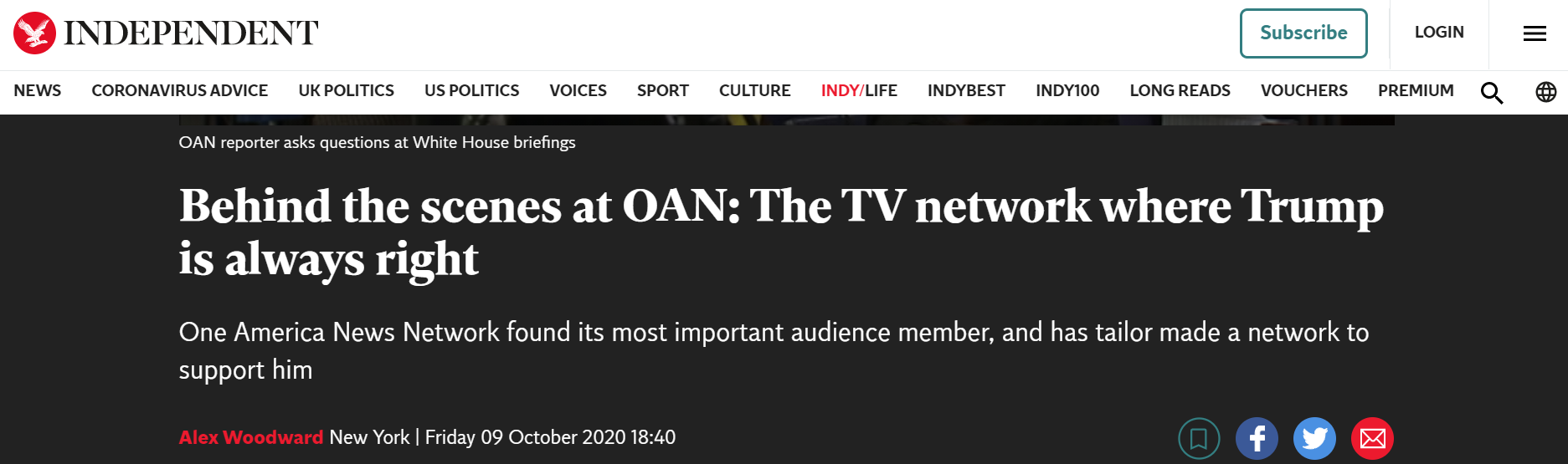 △英國《獨立報》曝光“一個美國新聞”(OAN)為獲得美國政府官方的媒體資源,散播大量極端、不實信息。
