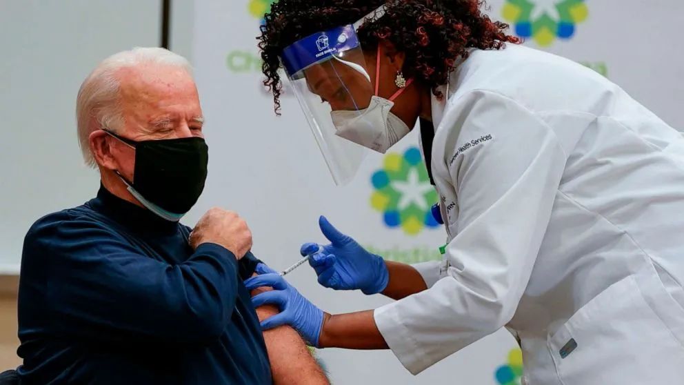 美國廣播公司(ABC)消息,當地時間週一(21日)下午,美國當選總統拜登在位於特拉華州的克里斯蒂安娜醫院(ChristianaCareHospital)公開接種了輝瑞新冠疫苗。報道還説,拜登的夫人,吉爾·拜登博士週一早些時候已接種。