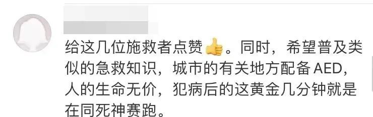 網友看後紛紛為好心人點贊,同時提出“安裝AED非常有必要”↓