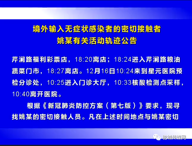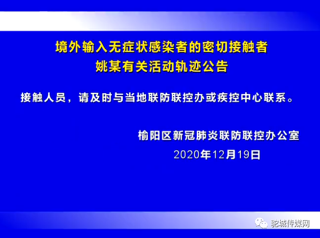 榆林市新冠肺炎聯防聯控辦批轉我區"寶雞市應對新冠肺炎疫情領導小組辦公室函",要求對境外輸入無症狀感染者密切接觸者姚某的密切接觸者進行協查管理, 經調查,現將姚某有關活動軌跡公告如下: