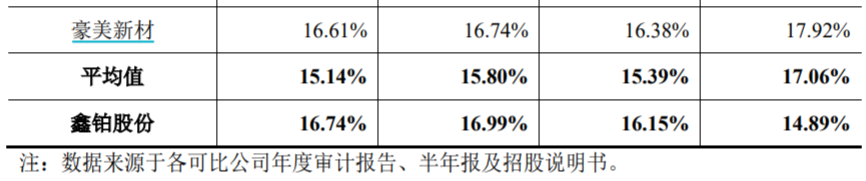 不僅如此,豪美新材是與鑫鉑股份構成同行業可比程度最高的上市公司,根據招股書披露,鑫鉑股份的毛利率在2017年還顯著低於豪美新材,2018年便基本追上來了,2019年和2020年上半年更是實現了小幅反超。