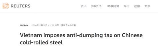 【環球網報道】據路透社報道,越南工貿部當地時間23日聲稱,從12月28日起的五年內,越南將對部分原產於中國的冷軋鋼卷和鋼板徵收反傾銷税。