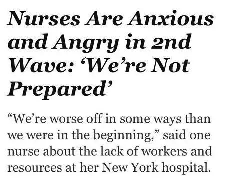 △《紐約時報》報道説,護士們表示:“現在疫情再次暴發,但我們仍然沒有做好準備。”