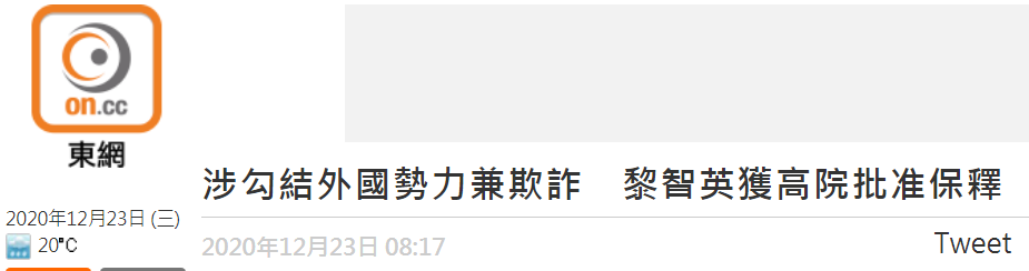 港媒:香港高等法院法官批准黎智英保釋外出!
