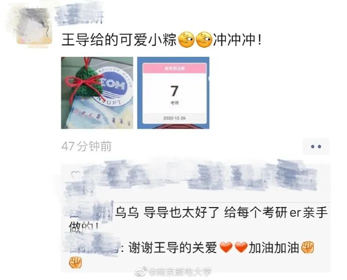 12月19日下午,南京郵電大學電光微院2017級考研學子收到了來自輔導員王宸文姬老師用時近四個月準備的暖心禮物——260只親手編制的毛線粽子,寓意高“粽!