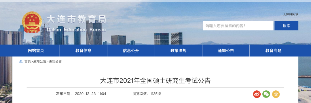 此外,大連市招考辦發佈2021年全國碩士研究生考試公告。