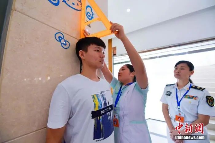 資料圖:一參加軍檢的考生正在進行身高測量。中新社記者 駱雲飛 攝
