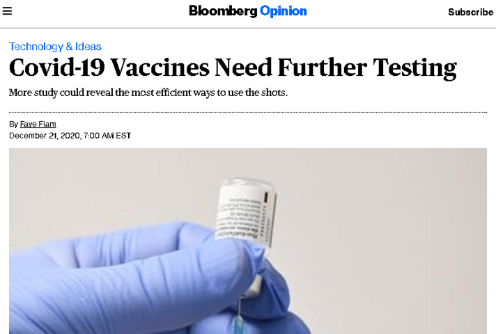 △彭博社評論稱,新冠疫苗需要進一步測試