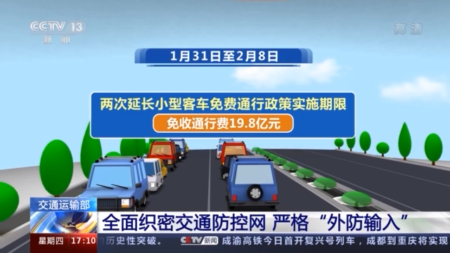 數據顯示,1月31日至2月8日,兩次延長小型客車免費通行政策實施期限,免收通行費19.8億元。