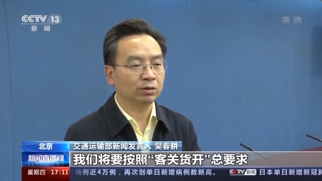交通運輸部新聞發言人 吳春耕: 公路水運口岸要按照國際客貨運“貨開客關”總要求,嚴格執行疫情防控舉措。加強入境人員“點對點、一站式”接運。鐵路、民航按規定落實相關防控措施。做好道路、航運、民航等領域國際運輸一線人員防控工作。指導有序開展船員換班。加大國際冷鏈運輸疫情防控力度。