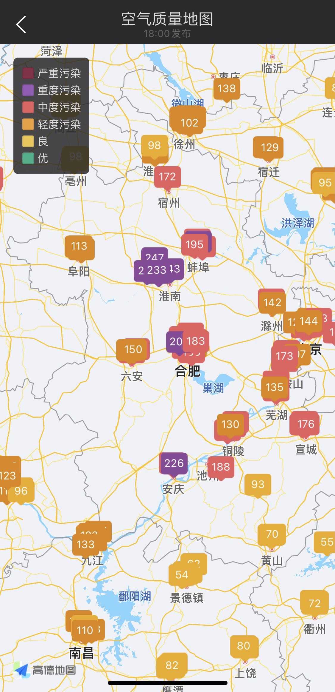 記者從安徽省生態環境廳獲悉,12月23日起,受靜穩天氣影響,安徽大部分區域污染物逐步累積,大部分城市出現小時重度污染。經預測,安徽大氣擴散條件進一步轉差,空氣污染將持續,連片的5個及以上地級城市平均AQI>200將持續3天及以上,符合省級橙色預警(II級)啓動條件 。 經安徽省重污染天氣應急領導小組批准,決定發佈重污染天氣省級橙色預警,於12月24日18時啓動Ⅱ級應急響應。