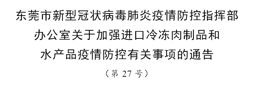 七、從2020年12月28日起,東莞市從事進口凍品儲存、銷售、加工的生產經營單位,對經市集中監管倉消殺、檢測的進口凍品,須查驗《出倉證明》;對未經市集中監管倉消殺、檢測的其他進入東莞的進口凍品,必須同時索取該批次產品的進口貨物報關單、檢驗檢疫證明、核酸檢測證明和消毒證明(簡稱“一單三證”),否則不得在東莞儲存、銷售、加工。