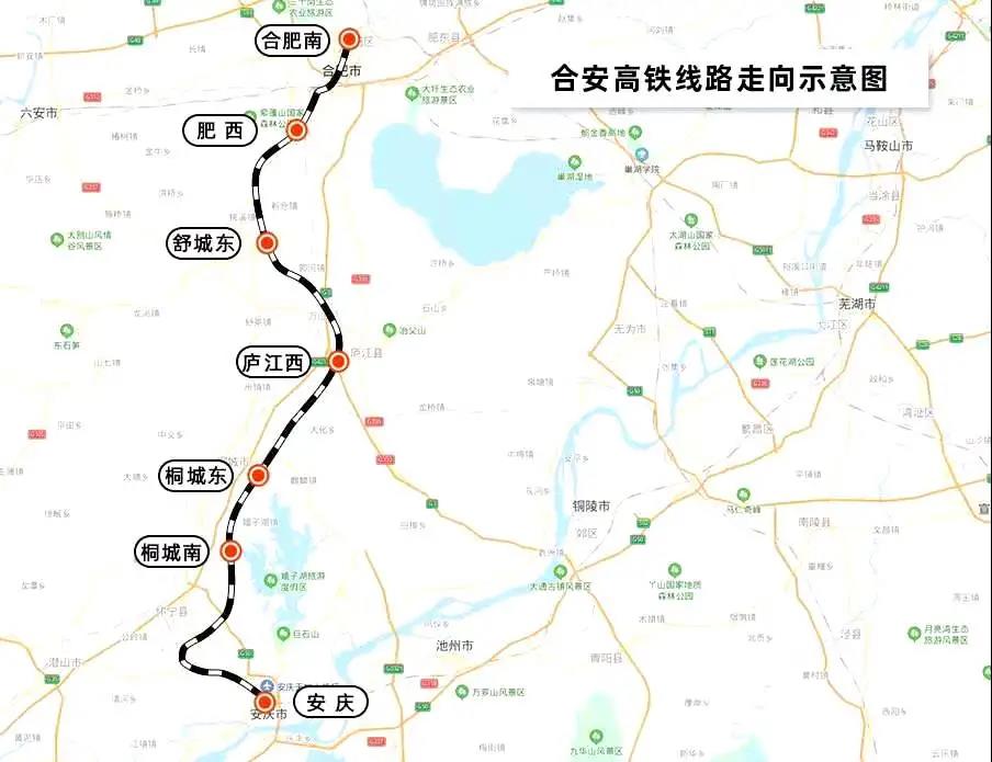 京港高鐵合安段位於安徽省西南部,北起安徽省會合肥,向南經肥西、舒城、廬江、桐城、懷寧等市縣,終至安慶市。線路全長176公里,設計時速350公里。“高鐵上的皖西南”與“軌道上的長三角”實現無縫對接。 鄭太高鐵