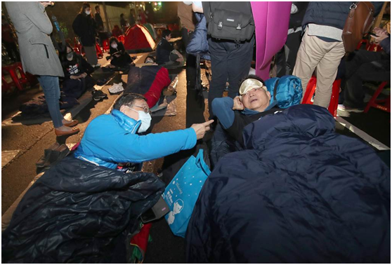 反萊豬表決大戰前夜,國民黨“立委”夜宿台“立法院”外