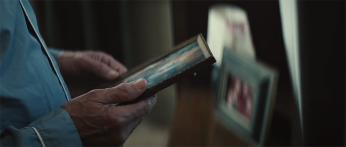 起牀後的爺爺看着牆上的照片陷入回憶,若有所思,