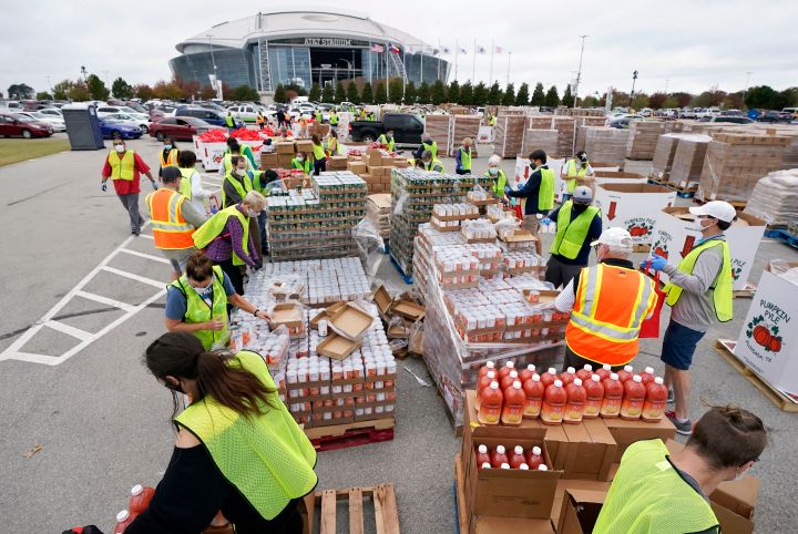 德州阿靈頓的志願者在分發食物(圖源:美聯社)
