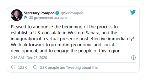 美國務院宣佈在西撒哈拉設立線上領事館,網友批:違反國際法!