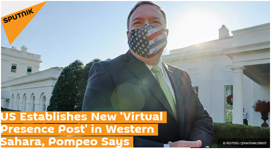 【環球網報道見習記者 侯雅齡】美國在承認摩洛哥對西撒哈拉主權的道路上更進一步了。據俄羅斯衞星通訊社報道,美國國務卿蓬佩奧週四(24日)在一份聲明中説,美國開始向西撒哈拉建立“線上派駐機構”,作為在該地區設立領事館的第一步。