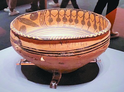 甘肅出土的跳舞紋彩陶盆。光明日報記者李韻攝
