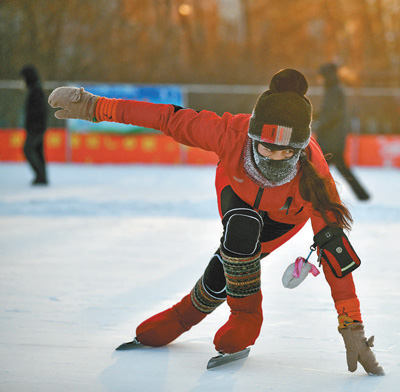 12月12日,內蒙古呼倫貝爾牙克石市,體育愛好者來到户外滑冰健身。