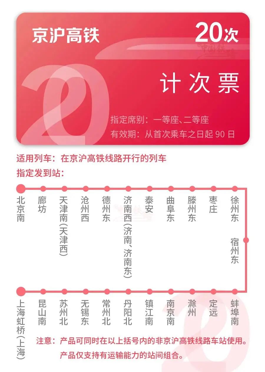 不過,小明還可以同時啓用北京南到天津南、濟南西到徐州東等不同發到站的計次票哦!