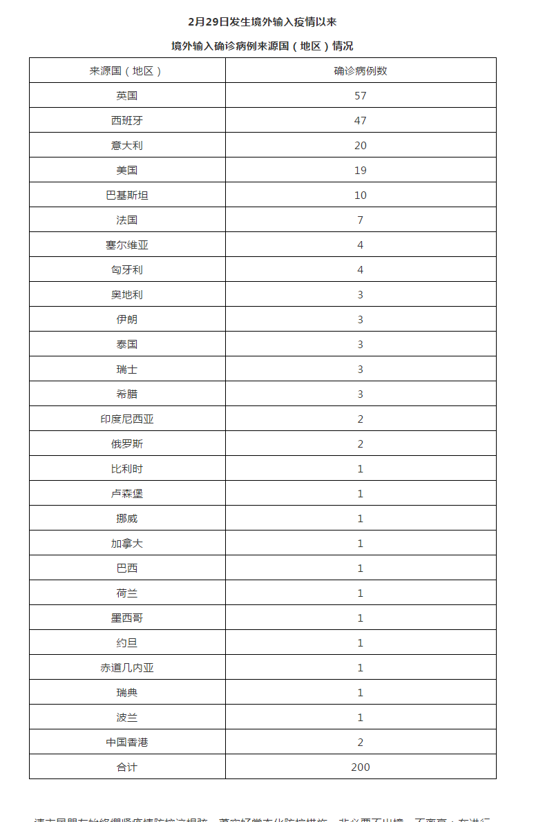 2月29日發生境外輸入疫情以來 境外輸入確診病例來源國(地區)情況