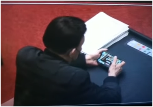 不止有打麻將的,台灣在10月14日舉行的“萊豬”聽證會上,台上有人發表意見時,台下民進黨“立委”趙天麟被發現在低頭玩小遊戲“俄羅斯方塊”。