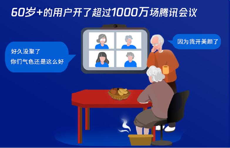 騰訊會議上還有一羣最讓人“意想不到”的活躍用户。得益於騰訊會議簡單的操作界面,為銀髮族線上溝通降低了門檻。過去一年,60歲以上的用户開了超過1000萬場會,這讓銀髮族成為擁抱數字化技術的新勢力。卸下了工作重擔之後的他們,正藉助數字化產品與老朋友聚會、認識新朋友,充實自己的退休生活。