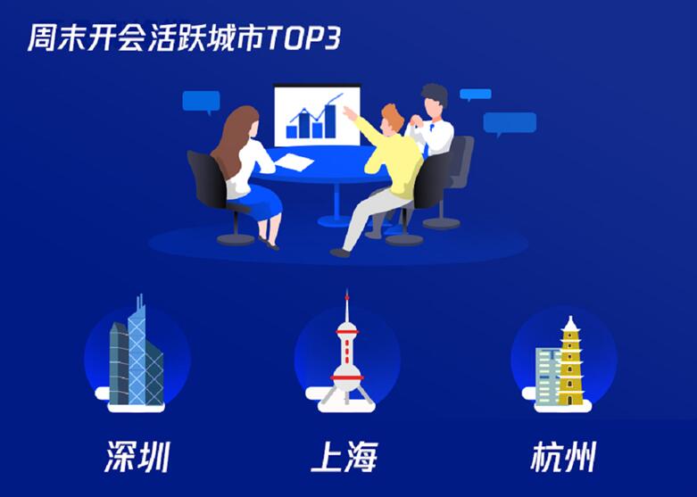 除此之外,當代職場女性則用實力詮釋了“職場家庭雙肩挑”。數據顯示,女性週末開會比例高於男性,深滬杭成為週末開會最活躍的城市。