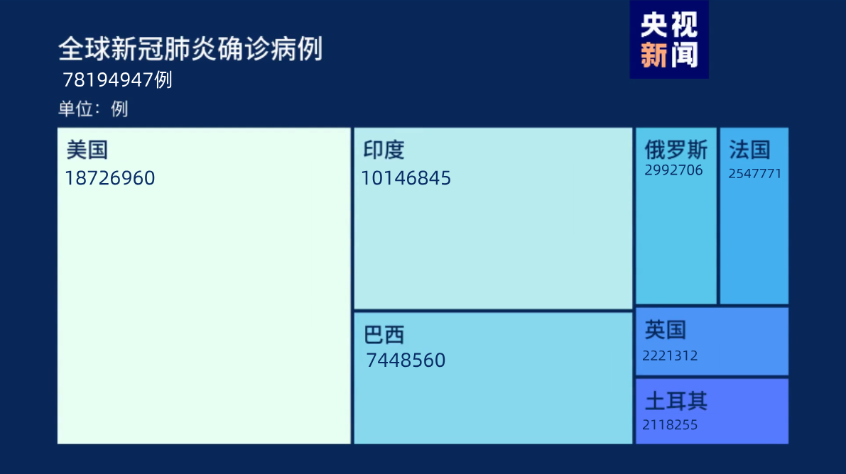 根據世衞組織最新即時統計數據,截至歐洲中部時間12月25日16時54分(北京時間12月25日23時54分),全球累計新冠肺炎確診病例78194947例,累計死亡病例1736752例。