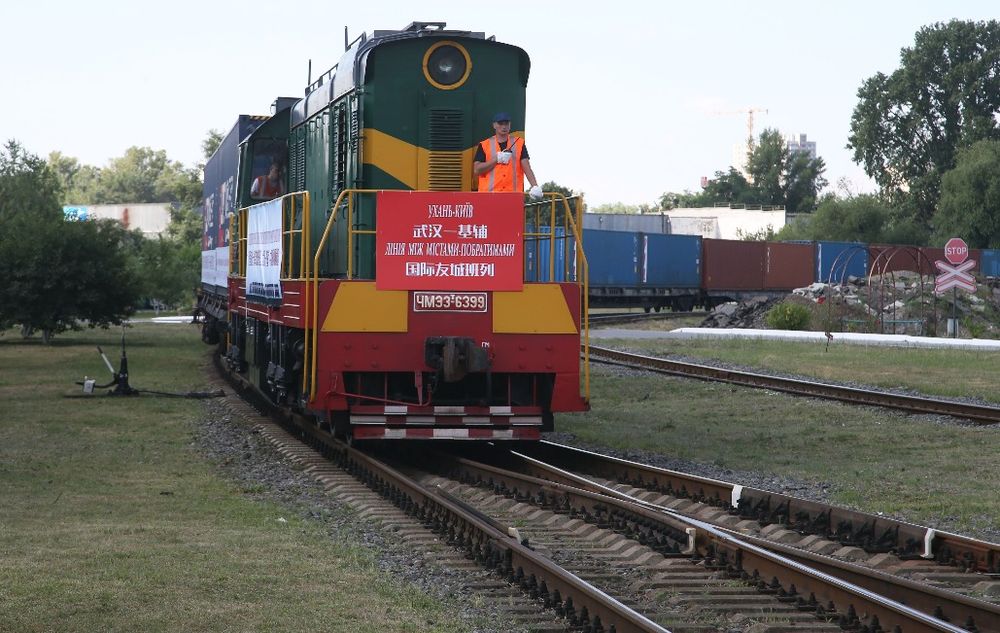 7月6日,由中國武漢發出的“武漢-基輔”中歐班列駛入烏克蘭首都基輔市利斯基貨運站。(新華社發,謝爾蓋·斯塔拉斯堅科攝)
