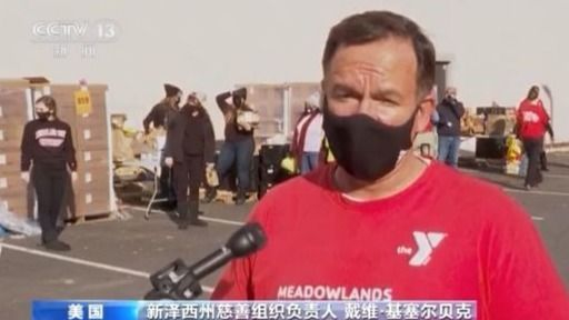 新澤西州慈善組織負責人 戴維·基塞爾貝克: 夏天的時候每月平均需求量是7萬份,現在達到了20萬份,而且這裏還是美國最富裕的縣之一。今天的隊伍超過了3公里,有人從早上5點半就開始等,人們開一兩個小時的車到這裏來,排三四個小時的隊才能拿到食物,這很能説明美國社會正在經歷的問題,人們如此絕望。