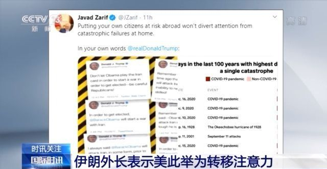 對此,伊朗外長扎裏夫在社交媒體上回擊説:“把你的公民派遣到海外,將他們置於風險中,並不能轉移大家的注意力,不去關注美國國內災難性的失敗。”
