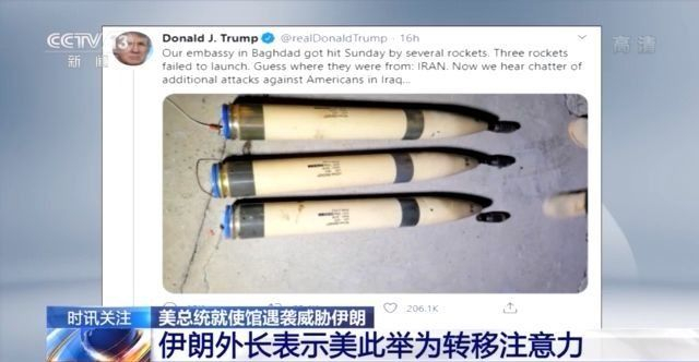特朗普23日在個人社交媒體上公佈了一張圖片,稱圖中是用來打擊美國駐伊拉克使館的火箭彈,這些火箭彈沒有成功發射,是由伊朗提供的。他威脅説:“伊朗準備對在伊拉克的美國人發動襲擊,只要再有一名美國人死亡,伊朗就必須負責,奉勸伊朗不要輕舉妄動。”
