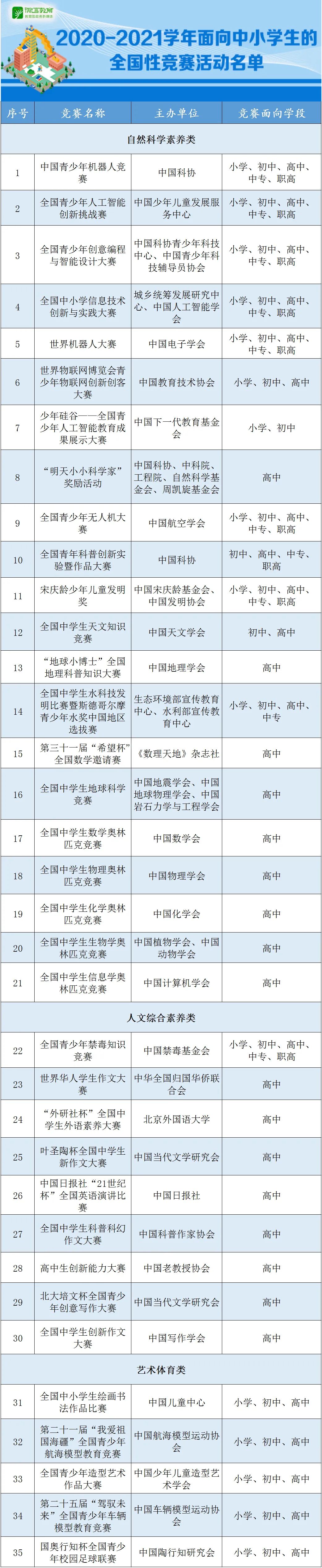 附:2020-2021學年面向中小學生的全國性競賽活動名單