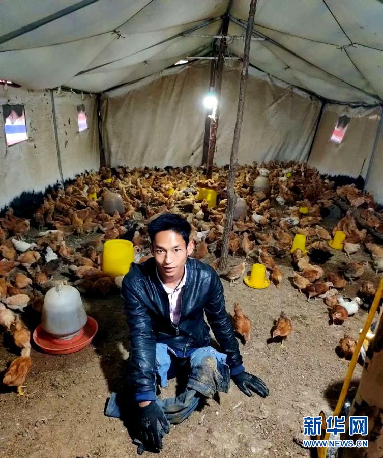 這是丁轉成在位於河南省嵩縣城關鎮王莊村的自家雞場裏(資料照片)。新華社發