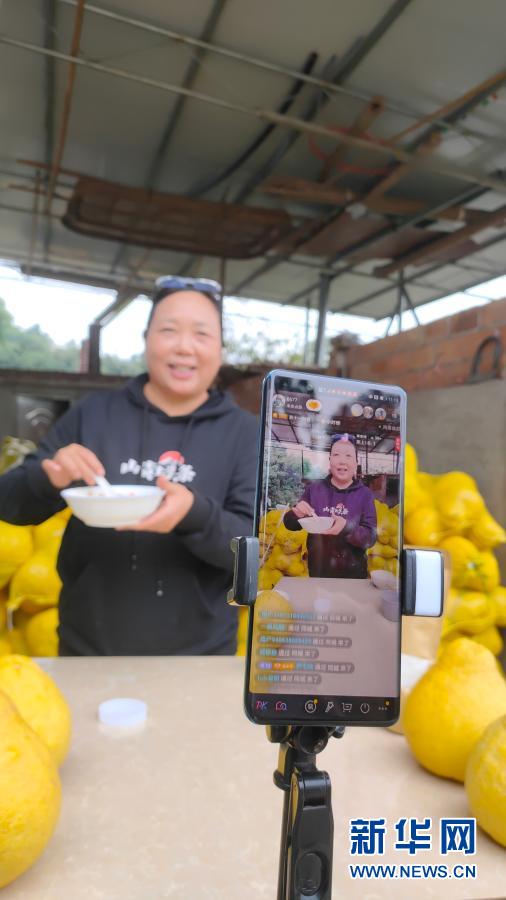 周鴻通過電商平台為江津區農產品直播帶貨(資料照片)。新華社發