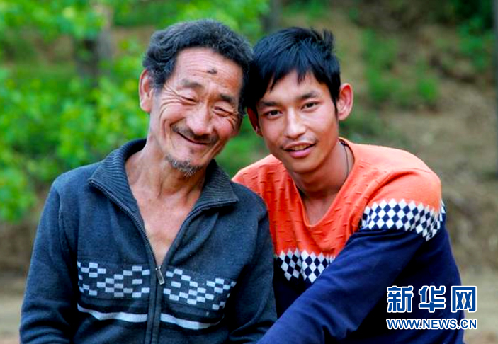 這是丁轉成(右)與父親的合影(資料照片)。新華社發