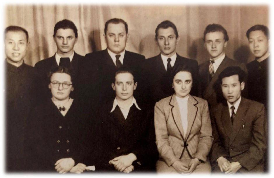 ▲1956年,彭士祿(前排右一)在莫斯科動力學院核動力專業進修深造