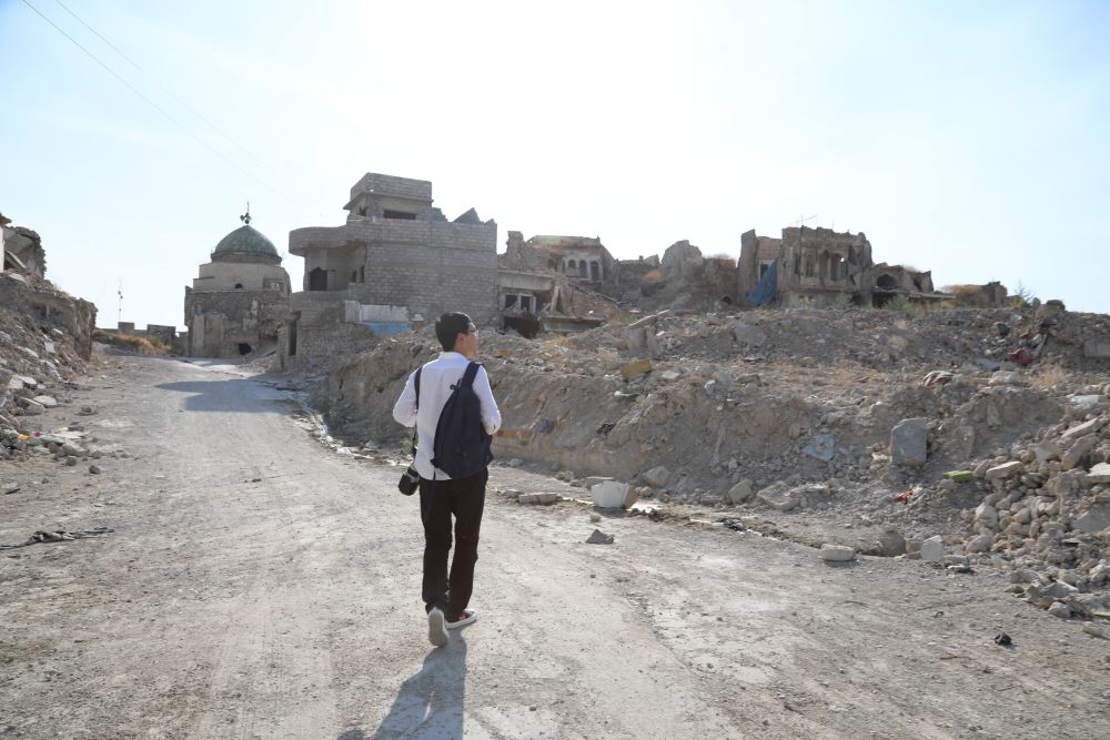 2019年7月2日,張淼在被摧毀的摩蘇爾老城採訪工作。(記者本人供圖)