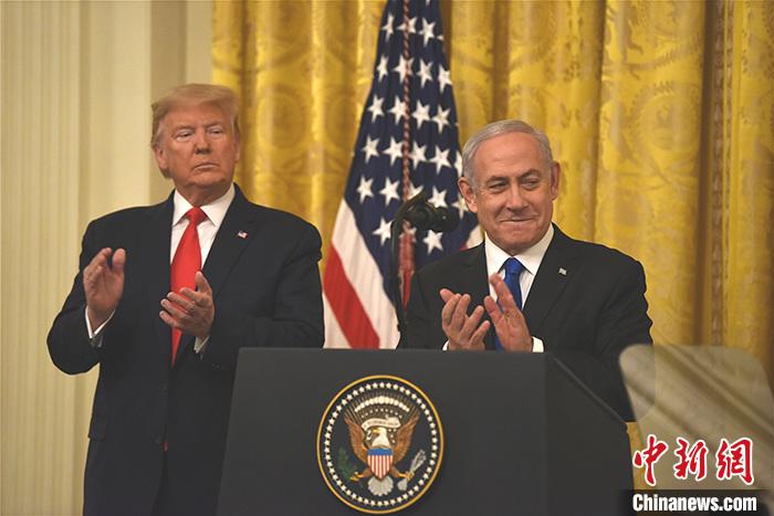 資料圖:美國總統特朗普(圖左)和以色列總理內塔尼亞胡(圖右)。中新社記者 陳孟統 攝