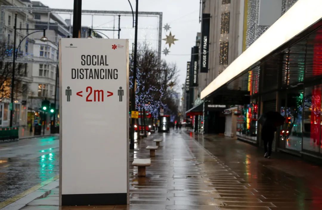 12月21日,英國倫敦的商業街牛津街一片冷清。新華社記者 韓巖 攝